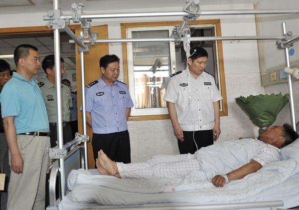 7月30日上午,市公安局徐乾副局長在交巡警支隊蘇必偉支隊長和公司婁伯翱總經(jīng)理等領(lǐng)導的陪同下,到八二醫(yī)院看望慰問了因公負傷的我公司保安四大隊交通協(xié)管員孫長如,并送上了慰問金。(有關(guān)事跡本網(wǎng)將繼續(xù)關(guān)注并發(fā)布)