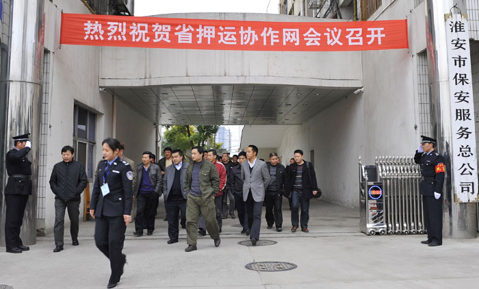 2011年11月30日至12月1日,江蘇省押運(yùn)協(xié)作網(wǎng)第五次會(huì)議在淮安召開,淮安市公安局初曉副局長(zhǎng)致歡迎詞,來自南京、無錫、蘇州、鎮(zhèn)江、常州、南通、泰州、揚(yáng)州、徐州、連云港、鹽城、宿遷、淮安等全省十三個(gè)市的保安(押運(yùn))公司總經(jīng)理和分管領(lǐng)導(dǎo)40余人參加了會(huì)議。省公安廳治安局賁志平副局長(zhǎng)、省公安廳保安監(jiān)管科錢幼菁科長(zhǎng)、淮安市公安局治安支隊(duì)劉硯明政委以及保安監(jiān)管科領(lǐng)導(dǎo)應(yīng)邀出席會(huì)議。