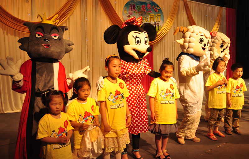 開場由一個喜羊羊的故事開始,大家靜靜的聽著,轉(zhuǎn)而變?yōu)橐粋€歡快的舞蹈《大家一起喜羊羊》。8個卡通人物在臺上跳著卡通舞,孩子們跟著音樂打起了節(jié)拍,整個舞蹈詮釋了一個喜羊羊和美洋洋勇敢戰(zhàn)勝灰太狼的快樂情景,讓孩子們寓教于樂。緊接著的是魔術(shù)表演,當魔術(shù)師輕輕的撥動手指,凌空出現(xiàn)一把傘,再一動,又是一把色彩斑斕的傘。每一次的變動,孩子們歡呼聲此起彼伏。當魔術(shù)師結(jié)束了他神奇無比的魔術(shù)表演,全場鴉雀無聲,隨即,爆發(fā)出一陣雷鳴般的掌聲。
