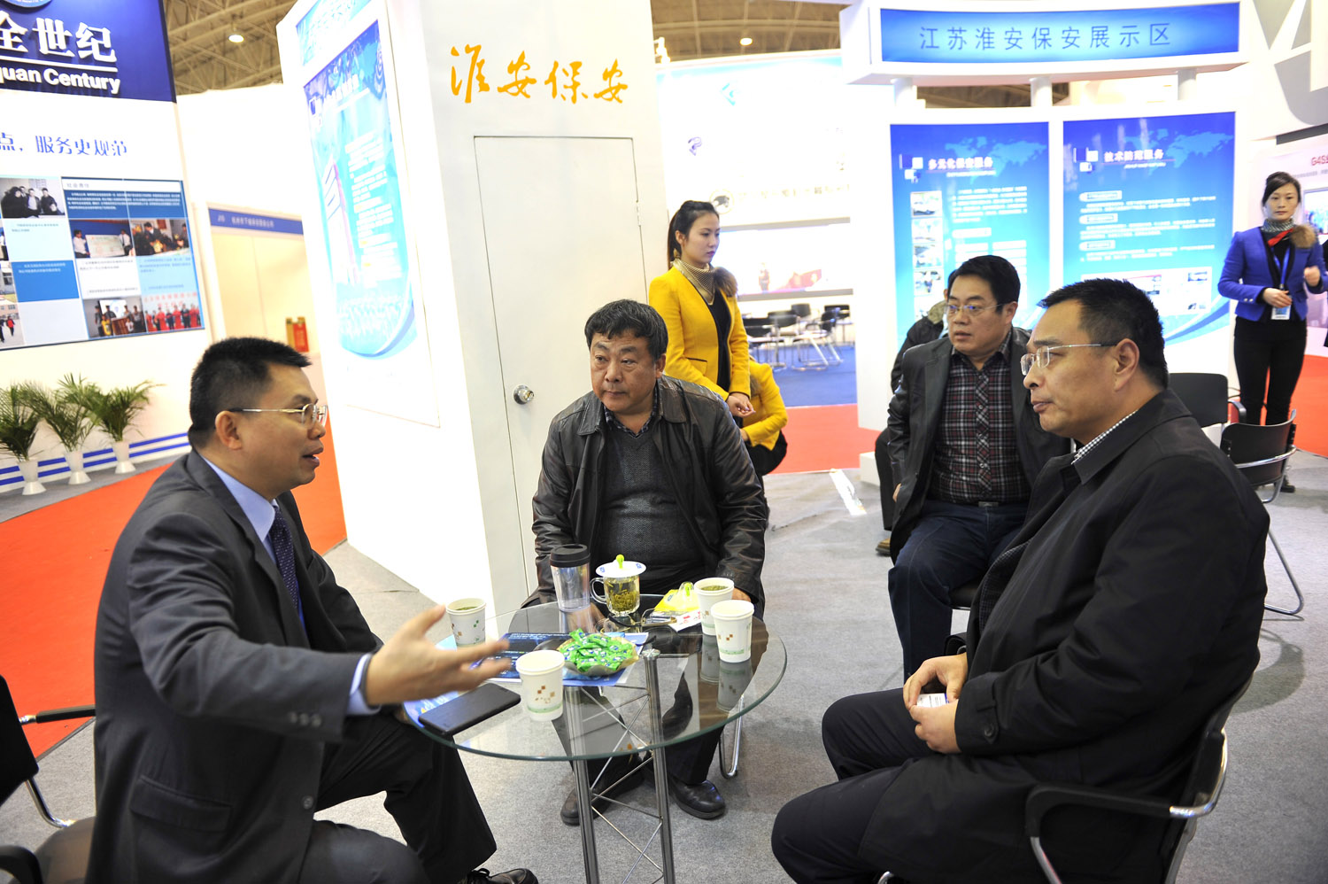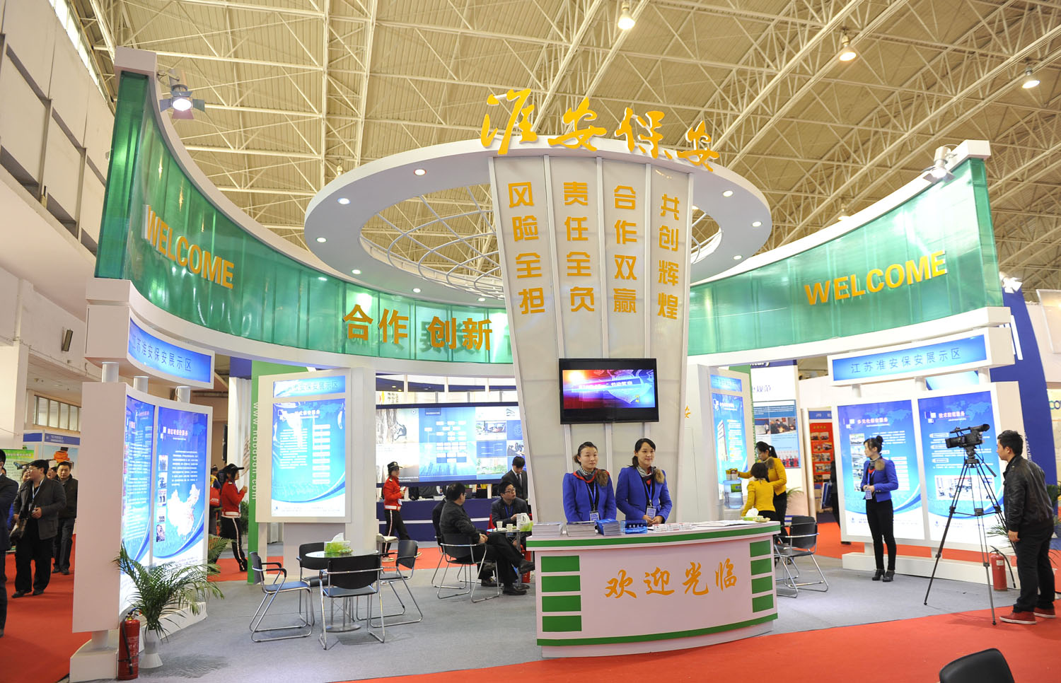 總公司在這次展會上首次參展亮相,采取多種方式來展示淮安保安品牌:一是認(rèn)真確定了展位面積和位置,以及新穎、獨(dú)特、大氣的展位設(shè)計;二是制作了圖文并茂并有特色亮點(diǎn)的宣傳展示燈箱,推出跨國保安服務(wù)、一站式保安服務(wù)和自行研發(fā)的運(yùn)鈔車圖像傳輸系統(tǒng)等獨(dú)特實(shí)用的亮點(diǎn)項(xiàng)目;三是專業(yè)、標(biāo)準(zhǔn)、靚麗的禮儀接待服務(wù)。做到服務(wù)有形象,展示有內(nèi)容。四是在展會期間,我們分四批組織了公司人防、押運(yùn)等部門50余名骨干來京觀展,向同行學(xué)經(jīng)驗(yàn),向優(yōu)秀企業(yè)學(xué)管理。