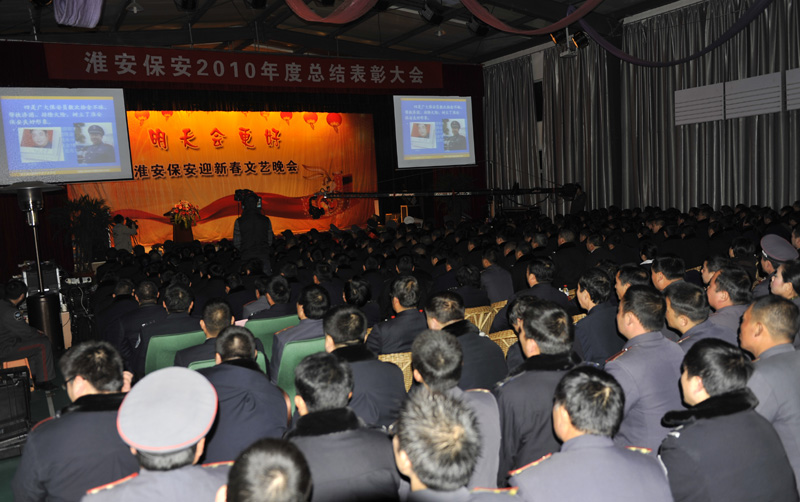 2月26日晚,一年一度的淮安保安總結(jié)表彰大會在總公司活動中心隆重舉行,公司保安隊伍、押運隊伍和各分公司員工代表800余人參加了會議。
