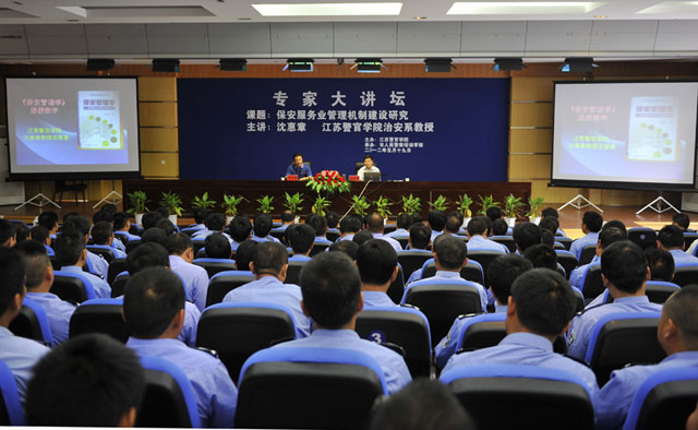 2012年5月19日,江蘇警官學(xué)院教授沈惠章在淮安警官學(xué)院以“保安服務(wù)業(yè)管理機(jī)制建設(shè)研究”為內(nèi)容進(jìn)行了一天的講座,公司保安隊(duì)伍和有關(guān)部門(mén)骨干近200人聆聽(tīng)了講座,并針對(duì)保安業(yè)情況與沈教授進(jìn)行了交流和溝通。