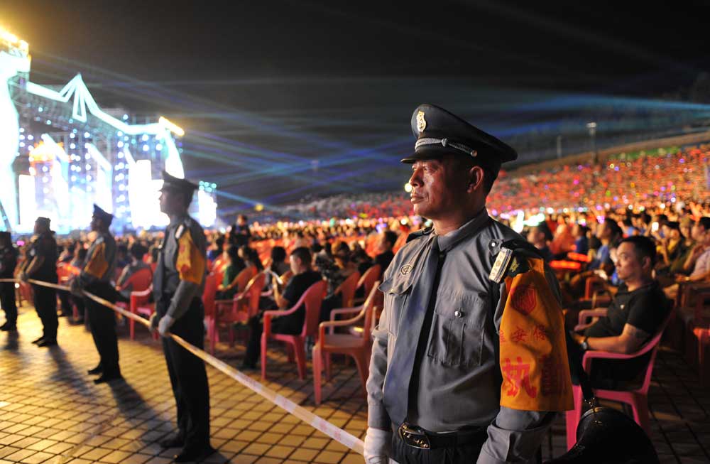 激情的六月,綠色的盱眙。6月12日19:30分,第十八屆中國•盱眙(金誠)國際龍蝦節(jié)“登高望遠”群星演唱會在盱眙縣中國龍蝦廣場隆重舉行。受主辦方邀請,江蘇省淮安市保安服務總公司派出700余人承擔此次晚會安保工作。