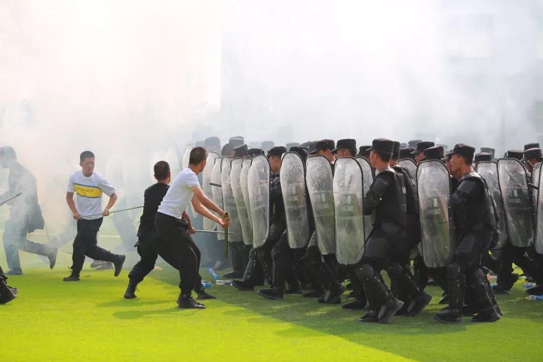 上午9時,匯報演練在升國旗儀式后拉開帷幕,來自總公司人防隊伍、押運隊伍、高職校安保專業(yè)班10個隊列方陣,依次進行了分列式展示和交通手勢操、擒敵拳、押運槍支反襲擊操、高級安保專業(yè)女子匕首操、反恐防暴盾牌術、群體性事件模擬現(xiàn)場處置等科目實戰(zhàn)演練,整場演練活動緊張有序,參演隊員精神振奮、士氣高昂、技能嫻熟、作風頑強,充分展現(xiàn)了保安隊伍紀律嚴明、團結奮進、敢打必勝的良好形象。