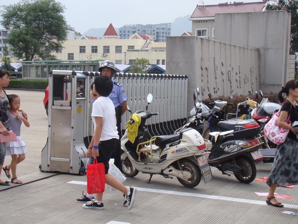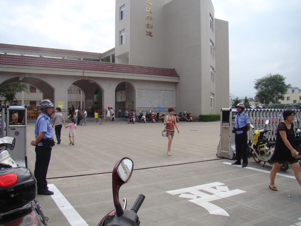 當不法歹徒準備對學生實施侵害時,校園保安就是學生們的第一道壁壘。昨天是龍泉市中小學及幼兒園開學的日子,龍泉市市區(qū)的學校的校門口都站立著兩名身材魁梧、精神抖擻的校園保安在執(zhí)勤,保證師生的安全。