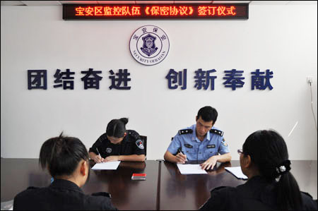 為進(jìn)一步提高監(jiān)控員保密意識,落實涉密人員保密責(zé)任,確保公安工作秘密安全,9月9日下午,廣東省深圳市寶安區(qū)保安服務(wù)公司信息工程部組織全體監(jiān)控隊員在會議室進(jìn)行了保密協(xié)議簽訂儀式。信息工程部經(jīng)理張洹分別與每名監(jiān)控隊員簽訂了《保密協(xié)議書》,要求監(jiān)控員仔細(xì)閱讀和領(lǐng)會《保密協(xié)議書》的內(nèi)容,嚴(yán)格遵守保密的內(nèi)容和范圍、保密義務(wù)、保密期限和違約責(zé)任。