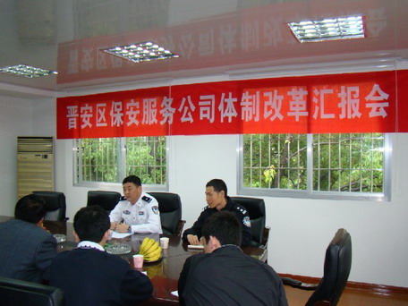 5月4日,福建省公安廳治安管理總隊(duì)副總隊(duì)長(zhǎng)趙魯進(jìn)一行到福州市晉安保安服務(wù)公司調(diào)研工作。在認(rèn)真聽(tīng)取了福州市公安局治安支隊(duì)副支隊(duì)長(zhǎng)陳革和晉安區(qū)委政法委副書(shū)記、區(qū)綜治辦主任夏冬林就自招保安員監(jiān)管和晉安區(qū)保安企業(yè)改制工作情況匯報(bào)后,趙副總隊(duì)長(zhǎng)強(qiáng)調(diào):一是保安企業(yè)和保安隊(duì)伍不能脫離公安機(jī)關(guān)主導(dǎo)和監(jiān)管。福州市根據(jù)保安條例精神,結(jié)合本地實(shí)際,選擇晉安區(qū)保安服務(wù)公司作為保安企業(yè)改制的試點(diǎn)單位,對(duì)現(xiàn)有保安企業(yè)如何改制進(jìn)行了有益的探索。保安企業(yè)改制必須依法進(jìn)行,堅(jiān)持公安機(jī)關(guān)的主導(dǎo),保安企業(yè)和保安隊(duì)伍不能脫離公安機(jī)關(guān)監(jiān)管,確保這支隊(duì)伍朝著正確健康方向發(fā)展;二是做強(qiáng)做大保安隊(duì)伍。要充分認(rèn)識(shí)保安服務(wù)市場(chǎng)國(guó)際化趨勢(shì)和保安工作所面臨的實(shí)際問(wèn)題,充分發(fā)揮多年來(lái)保安企業(yè)先行的優(yōu)勢(shì),大力拓展保安服務(wù)領(lǐng)域,努力提高保安服務(wù)科技含量和服務(wù)質(zhì)量,讓現(xiàn)有保安企業(yè)和保安隊(duì)伍茁壯成長(zhǎng),進(jìn)一步做大做強(qiáng)國(guó)有資產(chǎn),以更加強(qiáng)大的競(jìng)爭(zhēng)力迎接市場(chǎng)的開(kāi)放。三要加強(qiáng)自招保安員管理。要加強(qiáng)自招單位保安工作和保安隊(duì)伍規(guī)范化建設(shè),加強(qiáng)物業(yè)保安等自招保安員日常監(jiān)督管理工作,科學(xué)合理地安排保安員考試發(fā)證工作,加快保安員十指指紋信息的采集和審查工作。