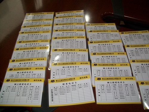 為提高大隊(duì)押運(yùn)服務(wù)質(zhì)量,增強(qiáng)一線押運(yùn)車組與網(wǎng)點(diǎn)服務(wù)單位的直接協(xié)調(diào)溝通,減少應(yīng)聯(lián)系不夠造成的各類誤會(huì),寧波安邦護(hù)衛(wèi)有限公司農(nóng)行大隊(duì)根據(jù)各中隊(duì)線路網(wǎng)點(diǎn)編排情況,特定制了一批服務(wù)網(wǎng)點(diǎn)固定電話聯(lián)系卡,并配發(fā)到各中隊(duì)車組上,方便使用。通過(guò)近一個(gè)月的試用,效果較好,提高了業(yè)務(wù)工作聯(lián)系的時(shí)效和準(zhǔn)確性,避免了因業(yè)務(wù)聯(lián)系不到位造成的投訴現(xiàn)象,各方反應(yīng)良好。