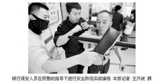 近日,在沈陽市公安局皇姑分局推出服務(wù)民生、服務(wù)發(fā)展的“雙服務(wù)”活動中,金融網(wǎng)點邀請公安部部級教官前來指導銀行保安防搶劫。