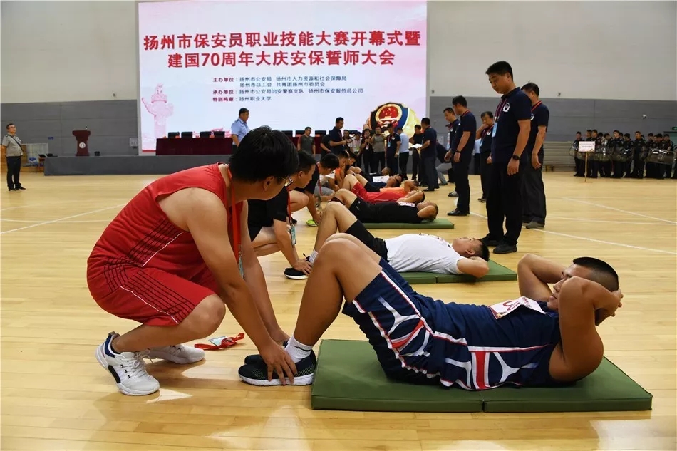 8月21日,2019年度揚州市保安員職業(yè)技能大賽開幕式暨建國70周年大慶安保誓師大會在揚州職業(yè)大學(xué)體育館隆重舉行,活動由市公安局、市人社局、市總工會、團(tuán)市委聯(lián)合舉辦。