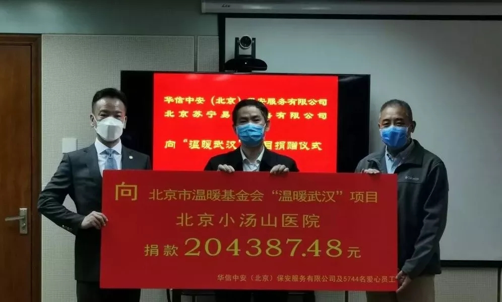 捐贈(zèng)儀式上華信中安集團(tuán)董事長(zhǎng)殷衛(wèi)宏將公司以及5744名愛(ài)心員工所捐共計(jì)204387.48元的善款捐贈(zèng)至北京市溫暖基金會(huì),并通過(guò)溫暖基金會(huì)定向捐贈(zèng)北京市小湯山醫(yī)院的醫(yī)務(wù)工作者。殷衛(wèi)宏董事長(zhǎng)表示,華信中安始終把企業(yè)社會(huì)責(zé)任融入公司的發(fā)展戰(zhàn)略中,企業(yè)既是社會(huì)繁榮的創(chuàng)造者,也是社會(huì)資源的消耗者,企業(yè)與社會(huì)共生的關(guān)系就決定了我們必須履行社會(huì)責(zé)任。近年來(lái)我們先后為汶川、玉樹(shù)等災(zāi)區(qū)及北京青少年發(fā)展基金會(huì)、希望工程北京捐助中心等機(jī)構(gòu),累計(jì)捐款達(dá)300多萬(wàn)元。同時(shí)華信中安作為“北京市保安員專(zhuān)項(xiàng)溫暖基金”創(chuàng)始發(fā)起六家企業(yè)之一,也一貫致力于幫扶全市一線困難保安員。八方攜手共渡難關(guān),萬(wàn)眾一心抗擊疫情。自疫情爆發(fā)以來(lái),華信中安人全面動(dòng)員迅速部署積極投身疫情防控的第一線,為駐勤服務(wù)項(xiàng)目織就一張張堅(jiān)實(shí)穩(wěn)固的防控網(wǎng),同時(shí)廣大員工也通過(guò)捐款的方式盡己所能為社會(huì)注入溫暖力量。我們將善款通過(guò)溫暖基金會(huì)定向捐贈(zèng)北京市小湯山醫(yī)院的醫(yī)務(wù)工作者,希望能切實(shí)為醫(yī)務(wù)工作者解決實(shí)際問(wèn)題,為我們以決戰(zhàn)決勝姿態(tài)奪取抗擊疫情阻擊戰(zhàn)的全面勝利增添信心。