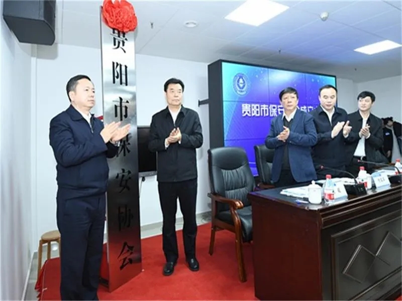 貴陽市委副書記、市政法委書記向虹翔,市政府副市長、市公安局黨委書記、局長陳小剛為“貴陽市保安協(xié)會”揭牌。