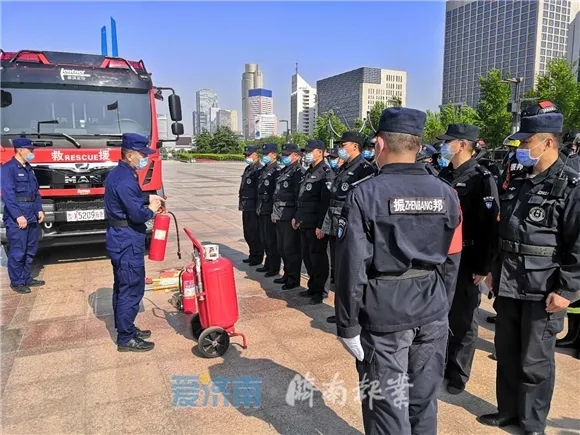 演練現(xiàn)場,由泉城廣場管理服務(wù)中心與山東振邦保安服務(wù)責(zé)任有限公司組成的安保隊(duì)伍進(jìn)行了“應(yīng)急棍術(shù)展示”、“疑似爆炸物處置流程”、“暴恐事件處置流程”、“火災(zāi)處置流程”和“消防知識培訓(xùn)”5個(gè)科目演練。