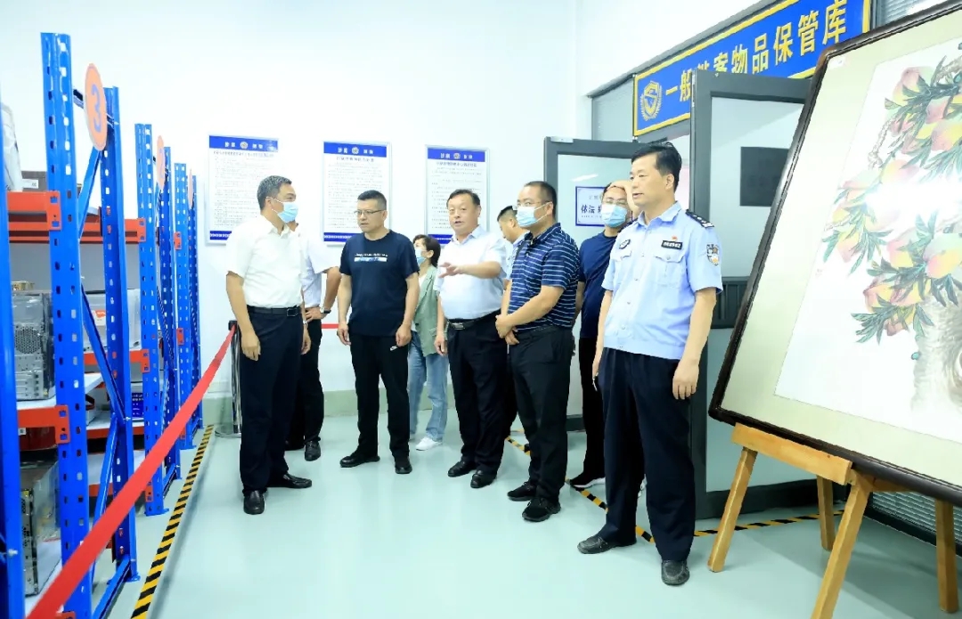 馬生海支隊(duì)長(zhǎng)一行認(rèn)真聽(tīng)取了涉案財(cái)物管理中心建設(shè)背景情況介紹,觀看了涉案財(cái)物一體化管理宣傳片。實(shí)地考察了管理中心各類涉案財(cái)物保管庫(kù)房和涉案車輛保管區(qū)。