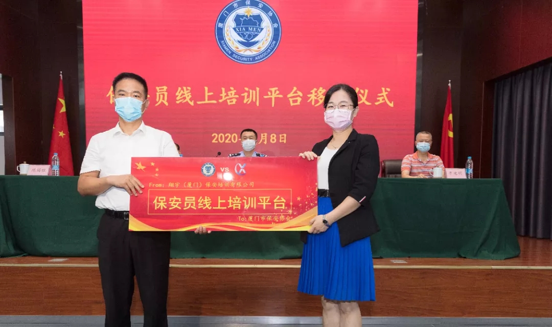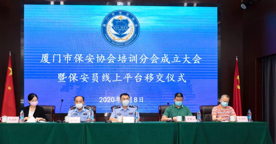 7月8日,廈門市保安協(xié)會培訓分會成立大會暨保安員線上培訓平臺移交儀式在廈門海鑫金融保安守押有限公司舉行。廈門市公安局治安支隊、市保安協(xié)會相關領導出席。