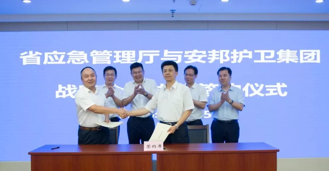7月15日,浙江省應急管理廳和浙江安邦護衛(wèi)集團有限公司在浙江省行政中心舉行戰(zhàn)略合作簽約儀式。浙江省應急管理廳黨委書記、廳長凌志峰,省國資委黨委委員、副主任劉盛輝,安邦護衛(wèi)集團黨委書記、董事長吳高峻出席簽約儀式并致辭。