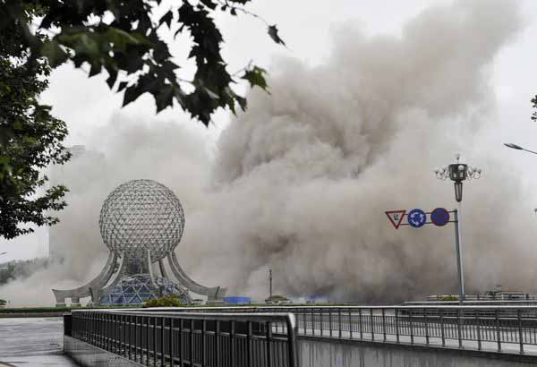 9月3日上午9時(shí)58分,淮安市中心高14層的供銷大廈實(shí)施爆破拆除成功。這是我市首次在市區(qū)采用定點(diǎn)爆破拆除技術(shù)拆除的高層建筑。針對(duì)供銷大廈位于市中心商業(yè)圈的實(shí)際狀況,為確保爆破拆除期間人民生命財(cái)產(chǎn)安全,總公司根據(jù)市局部署,抽調(diào)100名保安員全力做好爆破期間的安全警戒工作,圓滿完成了安保任務(wù)。總公司總經(jīng)理婁伯翱、副總經(jīng)理王克、徐文剛等領(lǐng)導(dǎo)到現(xiàn)場(chǎng)指揮。