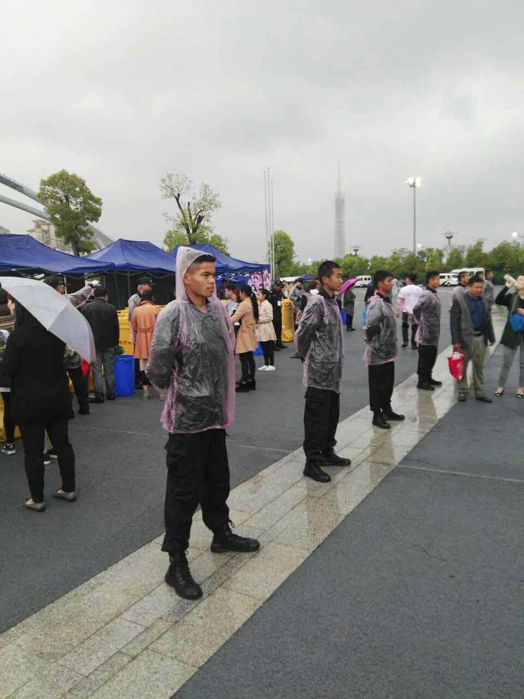 “1號點到位、2號點到位、3號點到位······”,根據(jù)指揮部的統(tǒng)一部署,從5月2日14:00開始,參加執(zhí)勤的第一批人防保安員700余人到達指定地點集結,16:00所有人員全部進入預定崗位開展工作,晚會雖然只有短短的三小時時間,但保安人員一直至深夜24:00全才陸續(xù)結束任務,安全歸隊。特別在17:00開始檢票至19:30演出這段時間,天降大雨,雨水淋了外衣,汗水濕透襯衣,但所有執(zhí)勤人員沒有因為大雨而離開崗位,他們全部堅守崗位,認真履職,確保觀眾安全有序進場。