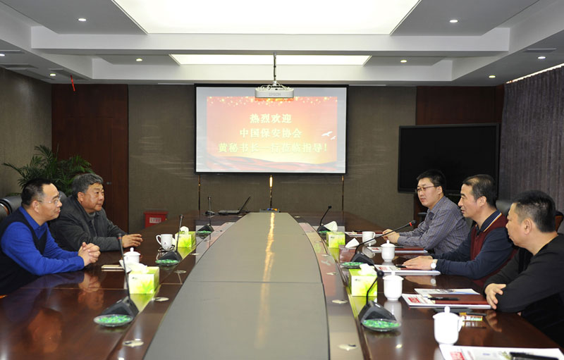 2017年12月10日,中國保安協(xié)會副會長兼秘書長黃學鋒一行2人蒞臨總公司指導工作,參觀了總公司智慧淮安技防展廳、視頻監(jiān)控指揮中心和押運中心、警犬基地、訓練館等場所。