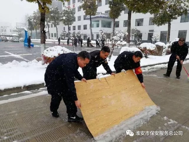 然而,雪景甚美,卻為出行的行人們帶來了嚴寒和積雪成冰的出行困難?;窗彩斜0卜?wù)總公司的保安們,考慮到種種問題,不畏嚴寒,在夜間按時出車執(zhí)勤,天不亮就拿起掃雪工具,積極主動清掃客戶單位門前、院內(nèi)積雪。積雪松的地方用推雪板推,積雪壓實的地方就用鐵鍬一點點的鏟除,執(zhí)勤崗點上的保安們呈現(xiàn)出一派火熱的鏟雪場景,讓城市煥發(fā)潔凈的光彩。