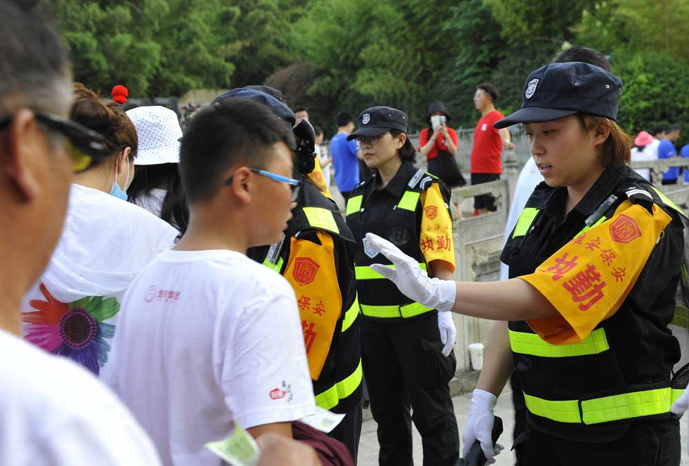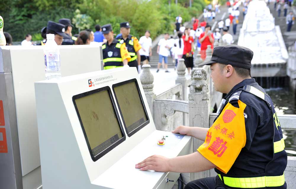 由于晚會演出現(xiàn)場地處山腰,給安檢和安保工作帶來一定的難度。為確實做好安保任務(wù),總公司多次召開專項工作會議,統(tǒng)一部署安保工作,人防中心總監(jiān)王錦春先后帶領(lǐng)領(lǐng)導班子多次到盱眙都梁廣場踏勘現(xiàn)場,熟悉崗位,開展現(xiàn)場拉練,研定安保方案??偣狙杆俪闪⑼頃弊C檢查、安全檢查、搜毒搜爆、秩序維護、安保巡邏、駐地保衛(wèi)、無人機監(jiān)控、突發(fā)事件處置組等安保小組,同時抽調(diào)行政中心、人防中心、押運中心、科技公司、器材公司、犬防大隊、無人機飛控隊、保安中專班、銀盾檢測站等部門人員參與安保活動。