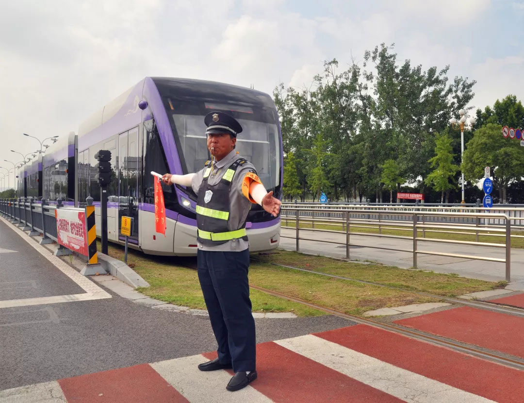 入伏以來,烈日當頭,街頭車輛卷起的滾滾熱浪撲面而來,讓人喘不過氣。在淮安現(xiàn)代有軌電車的戰(zhàn)線上有這么一群人,頂著烈日、迎戰(zhàn)高溫、揮舞旗幟、吹響口哨、引導(dǎo)行人。這就是淮安保安派駐在有軌電車各主要道口的引導(dǎo)員們。