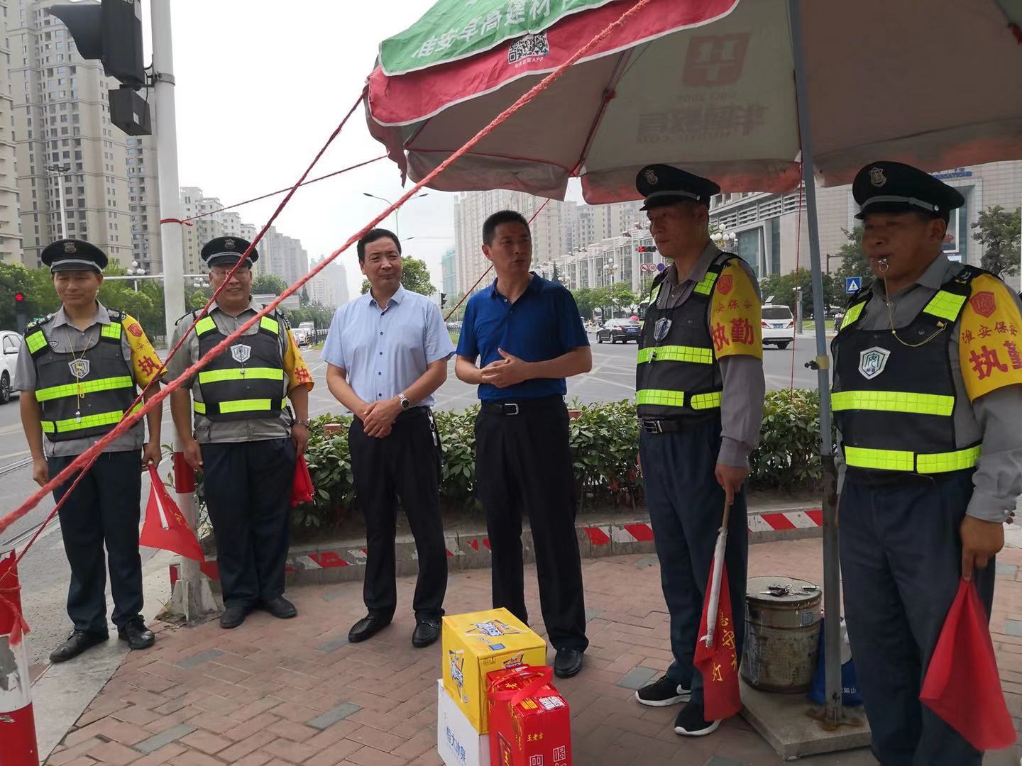 根據(jù)國聯(lián)集團部署,為切實做好夏季安全防范工作,確保全市武裝押運和人防保安工作安全,2019年8月6日至8日,總公司總經(jīng)理趙愛忠率領(lǐng)行政管理中心、人力資源中心和后勤部負責人一行,在押運中心和人防中心負責人陪同下,冒著高溫赴漣水、洪澤、金湖、盱眙4個押運基地,淮安區(qū)、淮安農(nóng)商行2個押運大隊,漣水保安分公司,人防管理中心市公安局、金融中心、淮陰卷煙廠、有軌電車等7個執(zhí)勤點開展夏季高溫慰問活動,為高溫下堅守崗位的基層隊員送去了慰問金、防暑降溫物品及夏季勞保用品。