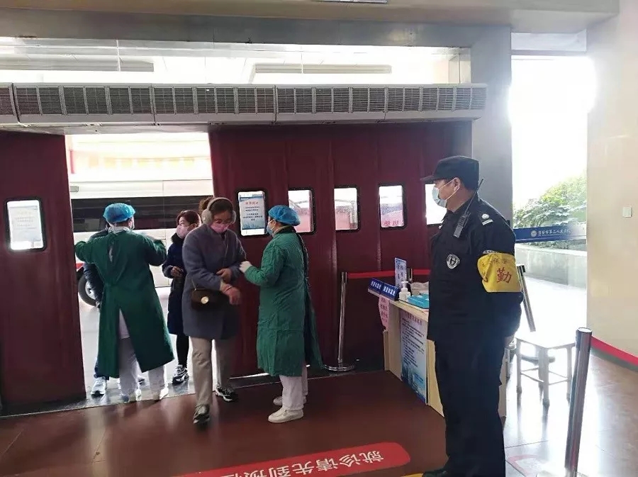 保安隊(duì)伍嚴(yán)把客戶(hù)單位人員和車(chē)輛出入關(guān),對(duì)進(jìn)入執(zhí)勤區(qū)域的人員進(jìn)行測(cè)溫登記和車(chē)輛消毒,配合客戶(hù)單位對(duì)辦公場(chǎng)所等公共區(qū)域進(jìn)行消毒防控;駐醫(yī)院保安員在執(zhí)勤中認(rèn)真做好就診人員體溫測(cè)量,疏散、引導(dǎo)就醫(yī);駐銀行保安員在執(zhí)勤中督促辦理業(yè)務(wù)的客戶(hù)做好自我防護(hù),并提醒佩戴防護(hù)口罩,協(xié)助銀行對(duì)客戶(hù)進(jìn)行體溫測(cè)量,做好安全防護(hù)措施。