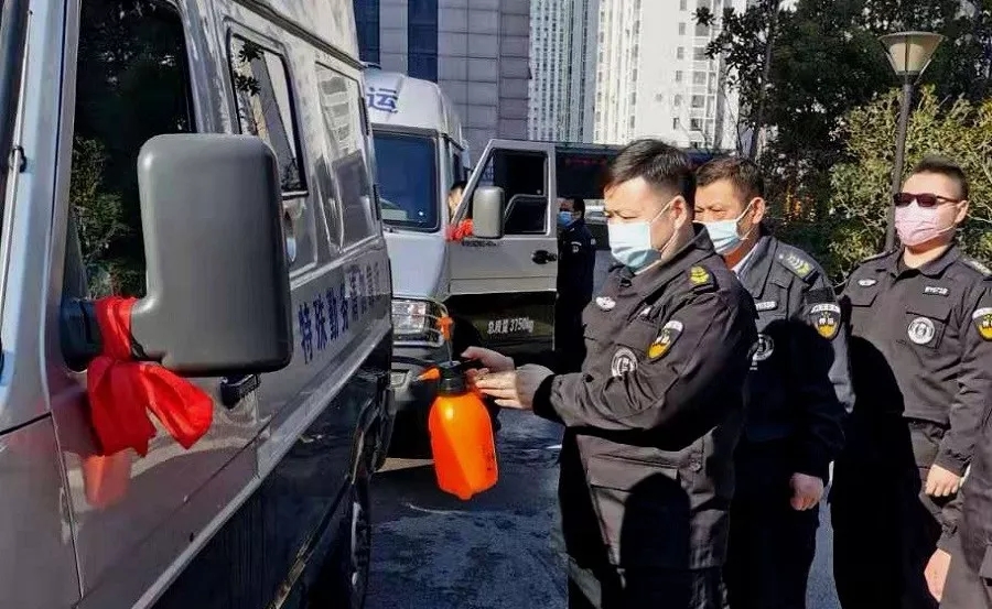 押運(yùn)隊(duì)伍在出車(chē)前和返回公司后,加強(qiáng)對(duì)個(gè)人裝備和運(yùn)鈔車(chē)的消毒工作,并安排專(zhuān)人每日對(duì)押運(yùn)裝備和押運(yùn)辦公場(chǎng)所進(jìn)行消毒,確保押運(yùn)過(guò)程零傳染。