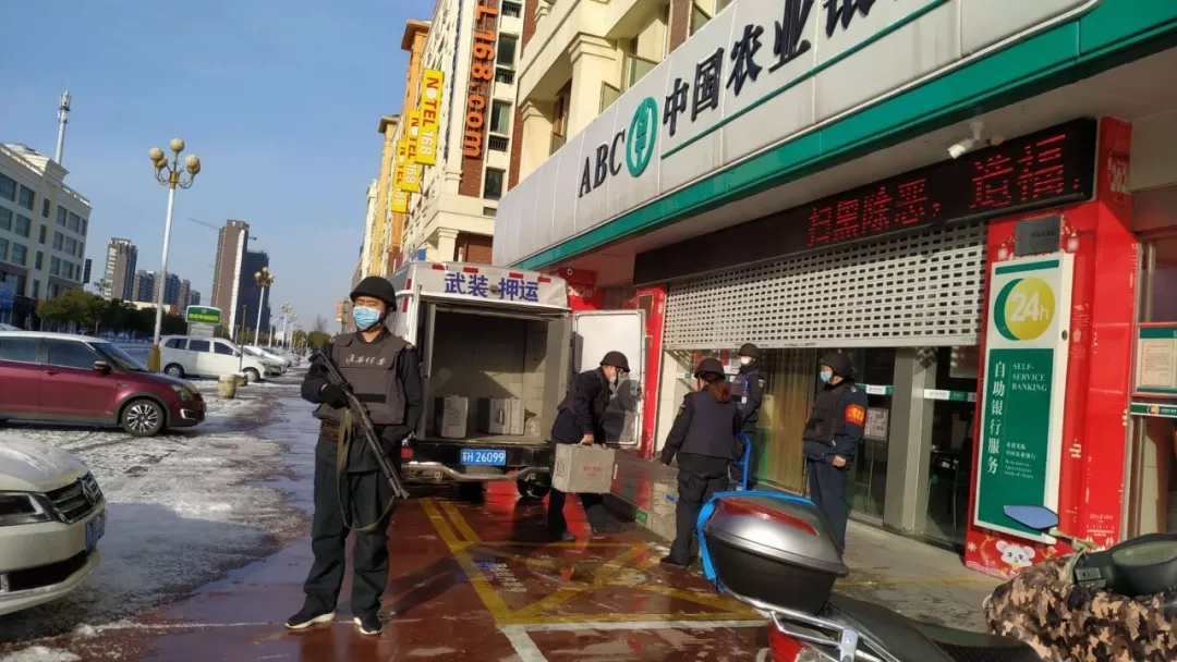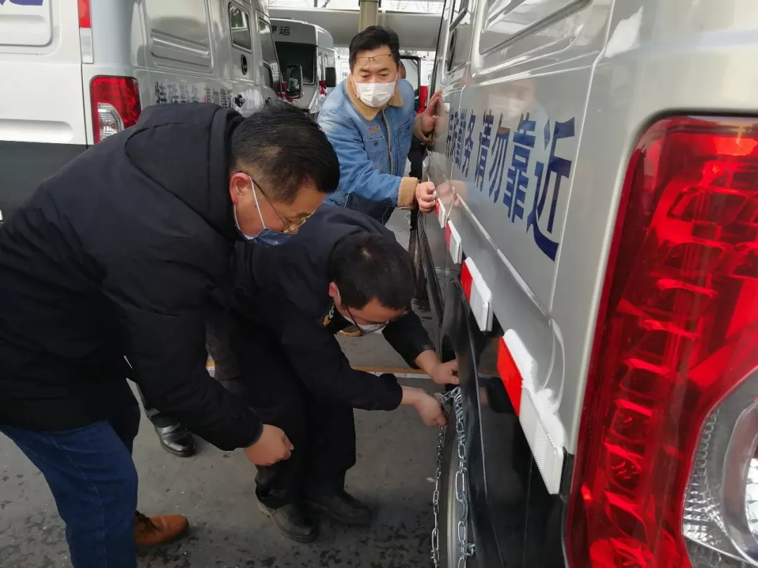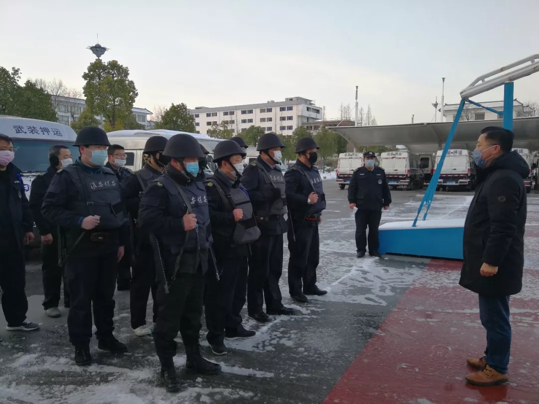 2月16日早晨5點30分,路面結(jié)冰光滑無比,出勤的押運(yùn)人員都按照押運(yùn)中心的要求提前趕到公司,清掃公司院內(nèi)的積雪和協(xié)助駕駛員安裝車轱轆防滑鏈。寒風(fēng)呼嘯,氣溫零下4度,只見隊員的手都凍得通紅,但是仍在快速有序地進(jìn)行安裝防滑鏈、測量體溫、領(lǐng)取裝備和做好一切防滑、防控疫情措施,押運(yùn)管理中心主任陳正國、教導(dǎo)員馬如松也戴著口罩加入到抗擊疫情、冰雪的工作中。每輛運(yùn)鈔車在登車出發(fā)前,中心領(lǐng)導(dǎo)都一再叮囑途經(jīng)橋坡和道路轉(zhuǎn)彎處的操作要領(lǐng)和注意事項,強(qiáng)調(diào)要小心駕駛,確保安全……