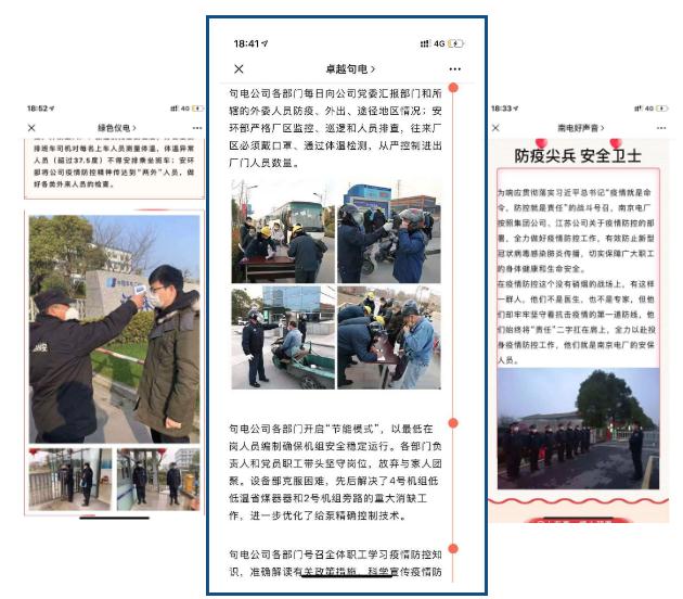 安排專人收集整理疫情防控信息,截止目前,有大唐南京電廠等8家客戶單位在公眾號(hào)和網(wǎng)站對(duì)公司駐外隊(duì)伍抗疫情況進(jìn)行專題報(bào)道,在其他媒體發(fā)表稿件6篇,及時(shí)宣傳疫情防控過程中涌現(xiàn)出來的好人好事和先進(jìn)事跡,樹立了駐外隊(duì)伍的良好形象。
