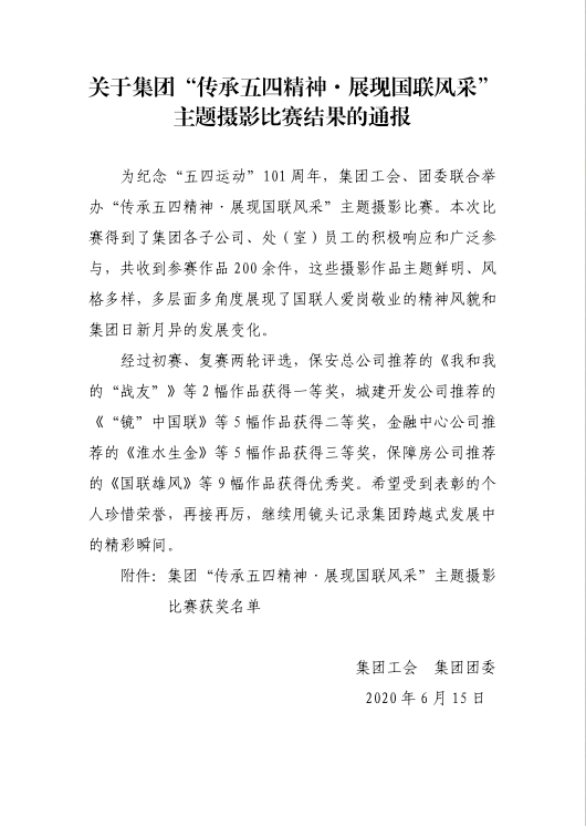 為紀(jì)念“五四運(yùn)動(dòng)”101周年,國聯(lián)集團(tuán)工會(huì)、團(tuán)委聯(lián)合舉辦“傳承五四精神·展現(xiàn)國聯(lián)風(fēng)采”主題攝影比賽。保安總公司選送胡偉芳和李晉戎的作品《我和我的“戰(zhàn)友”》等2幅作品,以鮮明的主題、多樣的風(fēng)格,從多層面多角度展現(xiàn)了犬防隊(duì)員愛崗敬業(yè)的風(fēng)貌和淮保人行穩(wěn)致遠(yuǎn)的精神,獲得了本次攝影大賽的一等獎(jiǎng)。