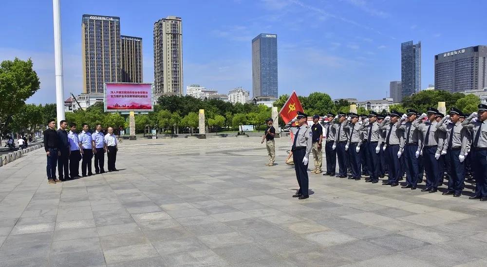 在活動(dòng)現(xiàn)場(chǎng),300余名淮安保安隊(duì)伍和押運(yùn)隊(duì)伍代表分別在大運(yùn)河文化廣場(chǎng)和保安總公司操場(chǎng)進(jìn)行莊嚴(yán)宣誓,忠于中國共產(chǎn)黨,忠于祖國,忠于人民,忠于法律;服從命令,聽從指揮;牢記職責(zé),嚴(yán)守紀(jì)律,不負(fù)重托,不辱使命;眾志成城,共克時(shí)艱,為決戰(zhàn)決勝抗疫抗洪攻堅(jiān)戰(zhàn)作出新的貢獻(xiàn)!