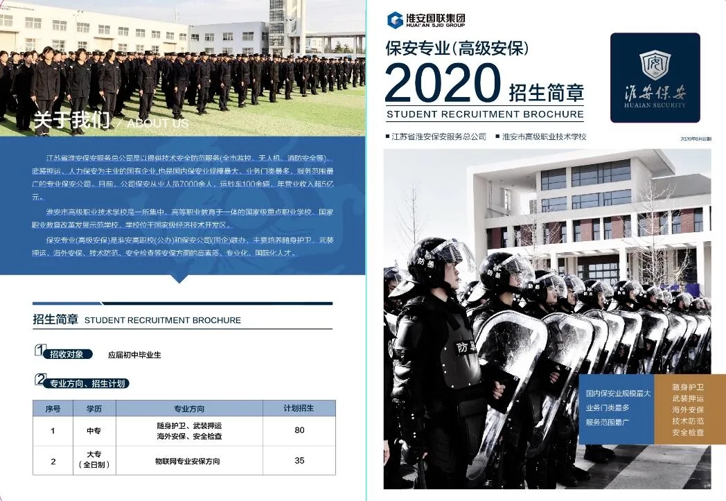 本屆高級安保專業(yè),在原有三年制中專班基礎(chǔ)之上,新增了五年制“物聯(lián)網(wǎng)方向高級安保”大專班。公司黨總支書記、總經(jīng)理趙愛忠對專業(yè)招生工作高度重視,多次強調(diào)招生工作的重要性。公司制定了詳細的招生宣傳工作方案,精心制作了招生宣傳手冊、招生宣傳片,通過中國保安微信號、淮安公安微警務(wù)、保安總公司微信號、抖音號等媒介加強招生宣傳,公司人防中心、押運中心等部門組織招生工作小組深入?yún)^(qū)縣中學畢業(yè)班宣講,吸引了大批考生踴躍報考。