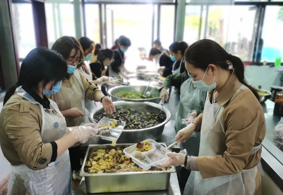 行政管理中心、財務(wù)中心、人力資源中心、押運中心等部門完成車輛保障、會務(wù)保障以及工作餐制作配送現(xiàn)場、隔離設(shè)施運輸、安裝、擺放、撤除等服務(wù)工作,累計配送盒飯1600余份、供應(yīng)自助餐1000余人次。