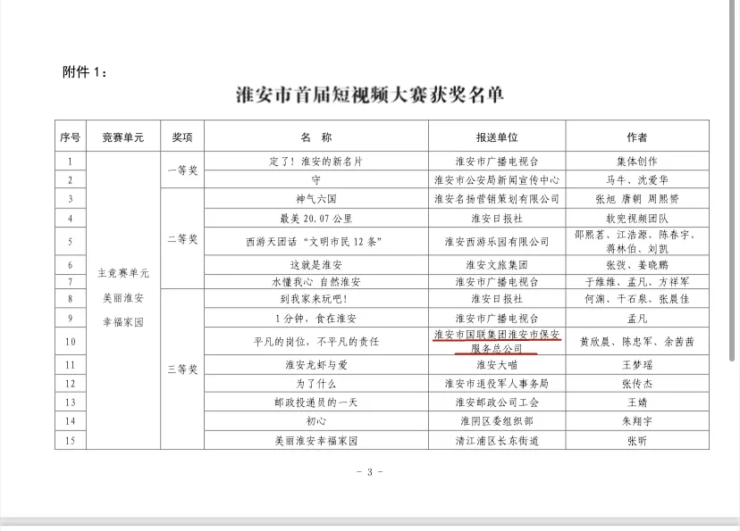 近日,在淮安市委網(wǎng)信辦組織開展的“淮安市首屆短視頻大賽評選活動”中,國聯(lián)保安總公司報(bào)送的短視頻作品《平凡的崗位 不平凡的責(zé)任》,榮獲“美麗淮安 幸福家園”競賽單元三等獎。