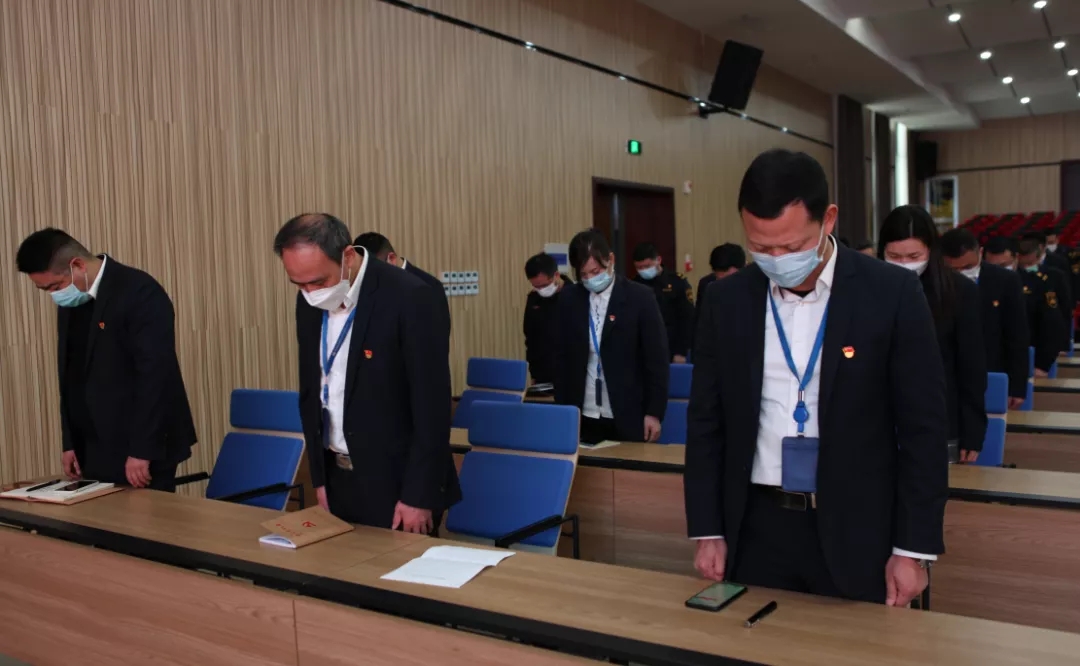 伴隨著低沉的哀樂聲,70多名公司黨員、團(tuán)員一一上臺(tái),向線上英雄紀(jì)念碑敬獻(xiàn)電子花圈,向英烈們默哀,寄托深深緬懷之情。